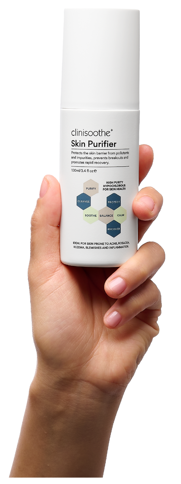 Our skin purifier uses advanced hypochlorous technology to gently cleanse and protect the skin.